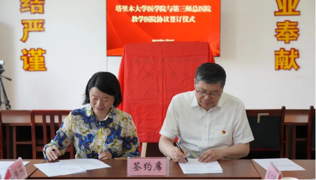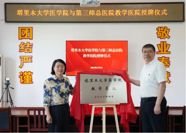 随后,双方签订教学医院协议,共同为第三师总医院“yl7703永利教学医院”揭牌。双方将以此次签约为起点,以人才培养为重点、以医学团队建设为载体,以科研创新为关键,以资源共享为依托,全面深化战略合作,实现院校联动共建,合作双赢。