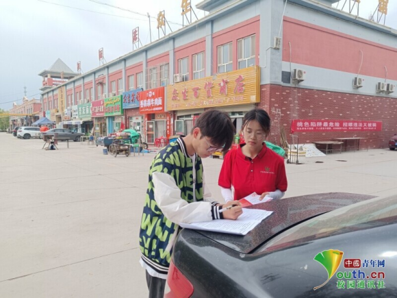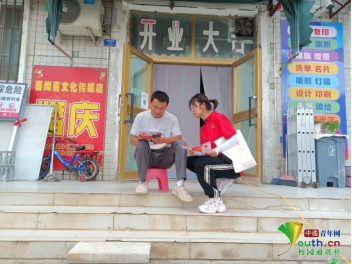 图为实践团成员在街边调研