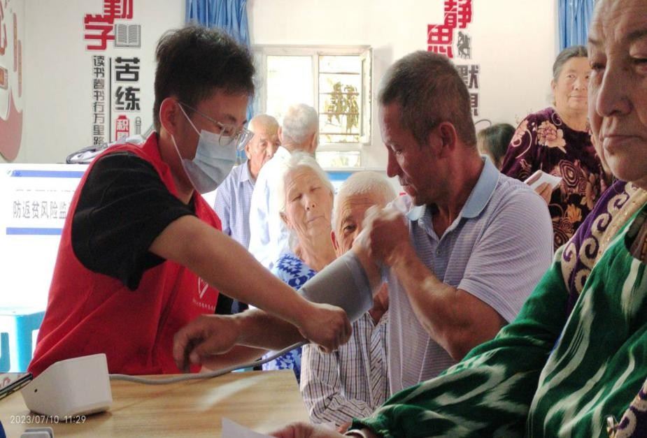 糖尿病、高血压,眼底异常等慢性病的形成大多与生活方式不健康有关,从健康到患慢性病,有很漫长的时期,且具有发病发作快强度大、一旦出现伴随终生等严重的特征。为了让糖尿病、高血压等慢性疾病的危害被更多人了解,yl7703永利“医路向南助健康,青新聚力振乡村”志愿服务团队——和田地区的成员与罕艾日克镇--当地医疗机构进行合作,积极为南疆慢性流行病的预防和治疗进言献策,为基层人民服务。