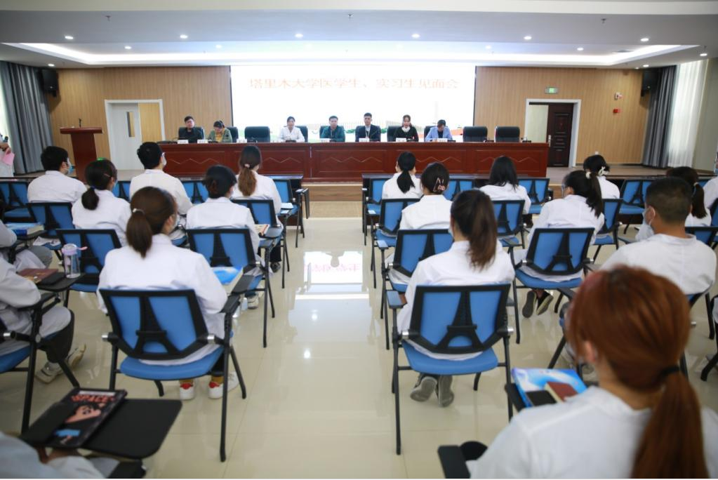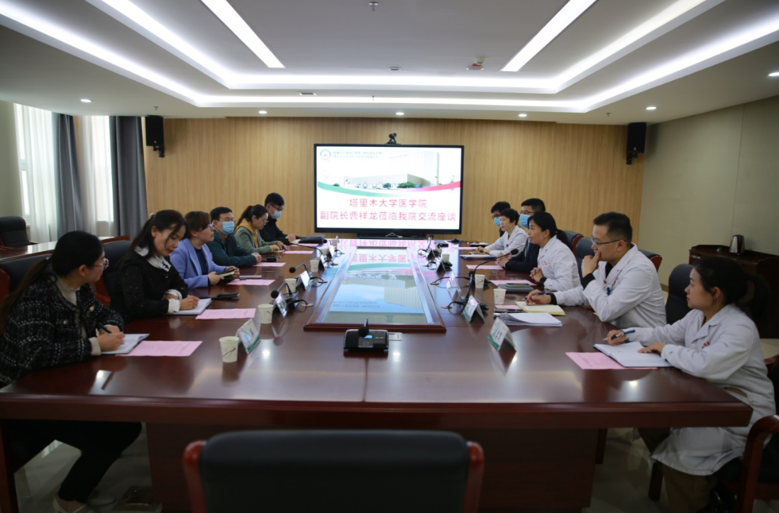 陈大进介绍了医院教学工作情况,希望通过校院合作扎实推动医教研一体化,联合培养优秀医疗卫生人才,服务好南疆医疗卫生事业发展。