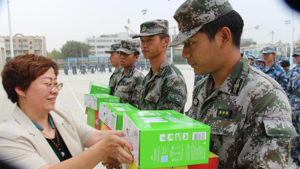 孟琪书记为军训教官发放慰问品