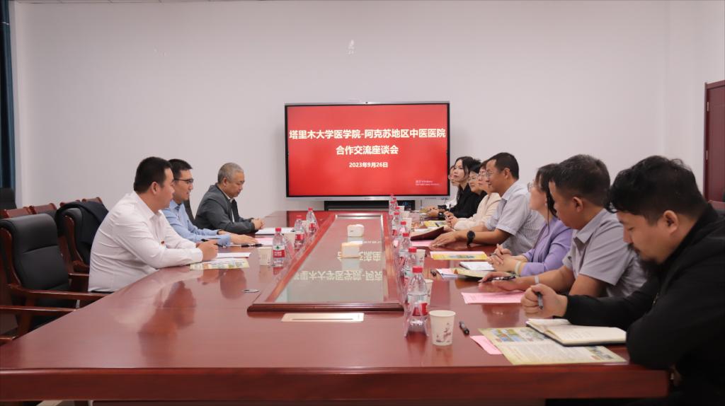 阿克苏地区中医医公司党委书记高学忠一行来yl7703永利交流座谈