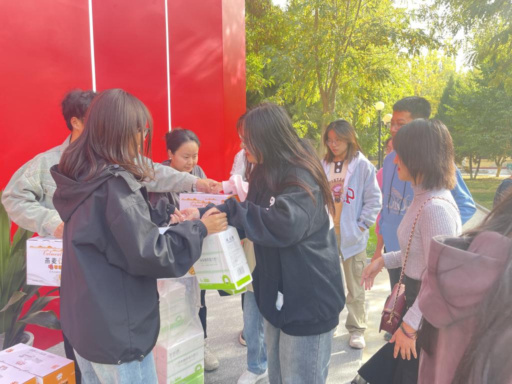 参观活动结束后,公司为老师和同学们发放了礼品。