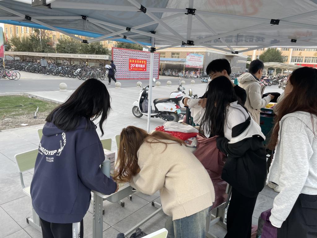 活动期间,老师和同学们热心的捐出自己的衣物,志愿者也耐心地向前来咨询的老师同学们讲解此次活动,并把捐出来的爱心衣物细心地贴上标签,分类放置。
