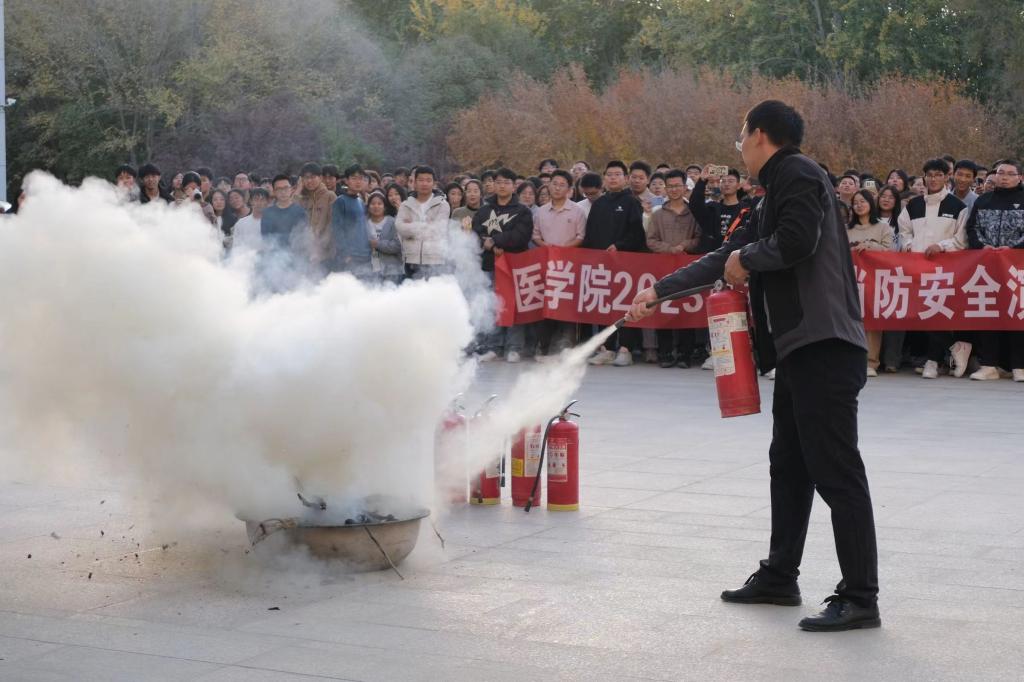 为提高员工自护自救能力,增强同学们在突发情况下的应变能力,普及逃生意识。公司于11月1日下午在医科楼开展消防应急疏散演练。党委副书记、经理王琳琳及全体师生参加消防演练。