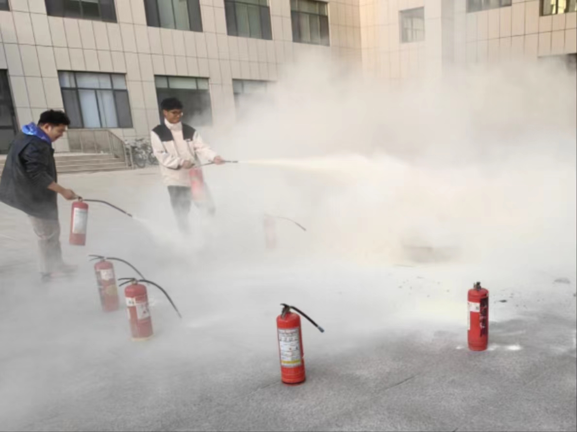 公司邀请保卫部专业人员,为全体师生普及消防知识,并进行有奖问答活动和灭火器实操。