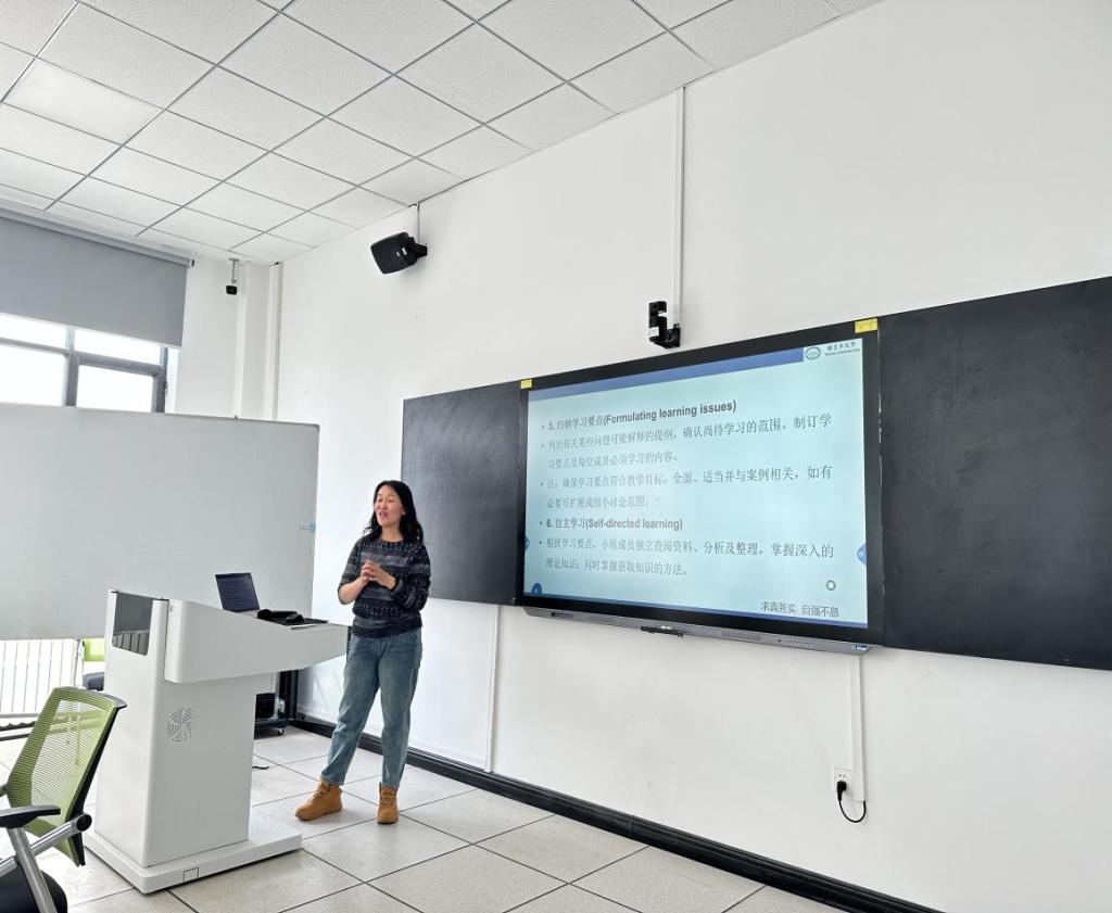 12月5日,石卓教授先对PBL教学流程做了详细的讲解,再请现场参加的青年教师扮演PBL教学中的员工角色,青年教师们以圆桌形式围坐,形成学习讨论小组,并以引导者的角色参与到教学讨论过程中,及时引领“员工们”解决案例中遇到的问题,并提出问题增加讨论互动。石教授还强调,在PBL教学实施的过程中,老师需要扮演“旁观者”,不解答同学们的问题,而是引导同学们解决案例中的问题,对于不懂之处,需要员工通过互动讨论和自主学习解决。