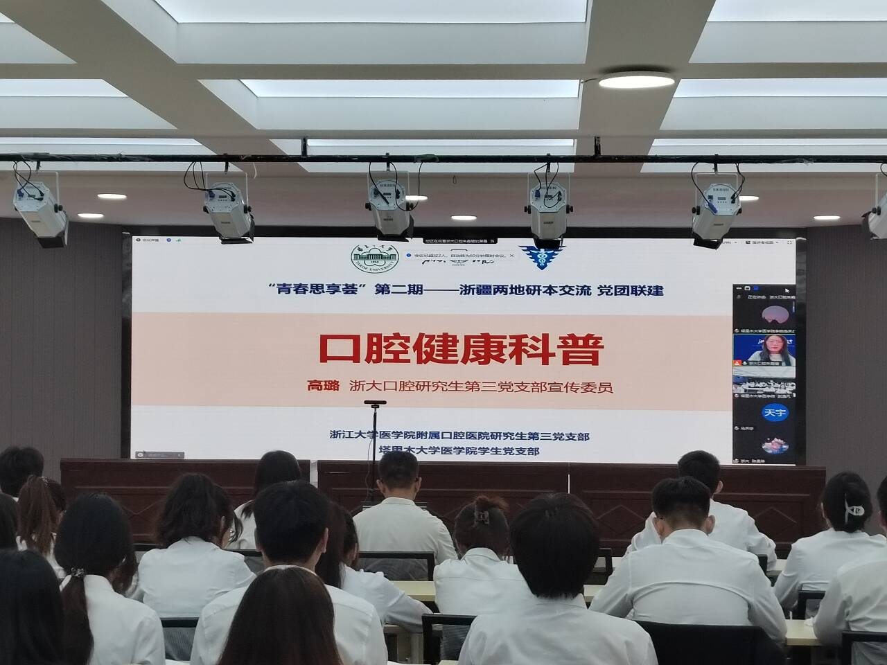 浙江大学口腔研究生第三党支部高璐为两地同学进行了“口腔健康科普”相关知识讲座。