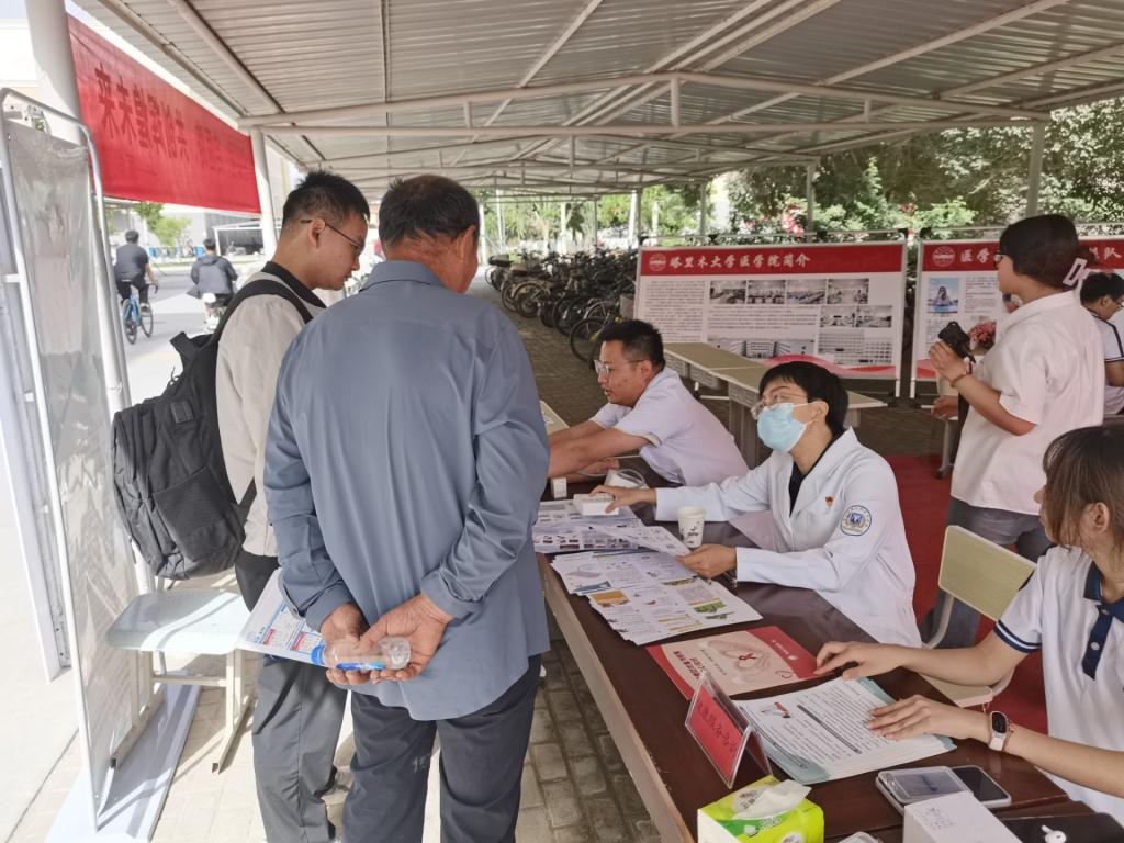 9月5日至7日迎新期间,yl7703永利别出心裁地将医学学科特色融入迎新活动中。公司邀请附属医院专家和公司科技特派员、员工志愿者在公司迎新点设置服务站,为家长和员工提供健康服务咨询。