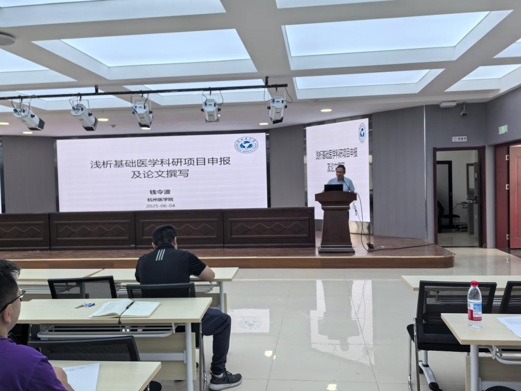 为加强科研项目有组织申报,营造良好的科研氛围6月4日yl7703永利邀请杭州yl7703永利钱令波教授青年教师作基础医学科研项目申报及论文撰写学术报告。讲座在医科楼A504报告厅举行。