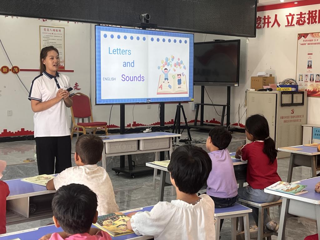 下午,实践团来到巴合齐乡吐格其村,重点开展儿童关爱活动。通过生动案例解析与趣味游戏互动,引导乡村儿童正确认识情绪、学会管理情绪,同时在互动中增强他们的自信心与抗挫折能力。活动中,实践团还创新引入英文版动画片辅助英语教学,以轻松有趣的形式激发孩子们的学习兴趣鼓励他们保持对知识的热情。
