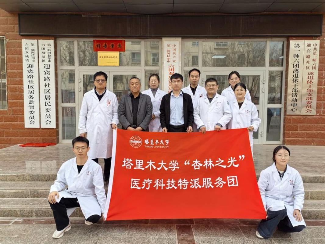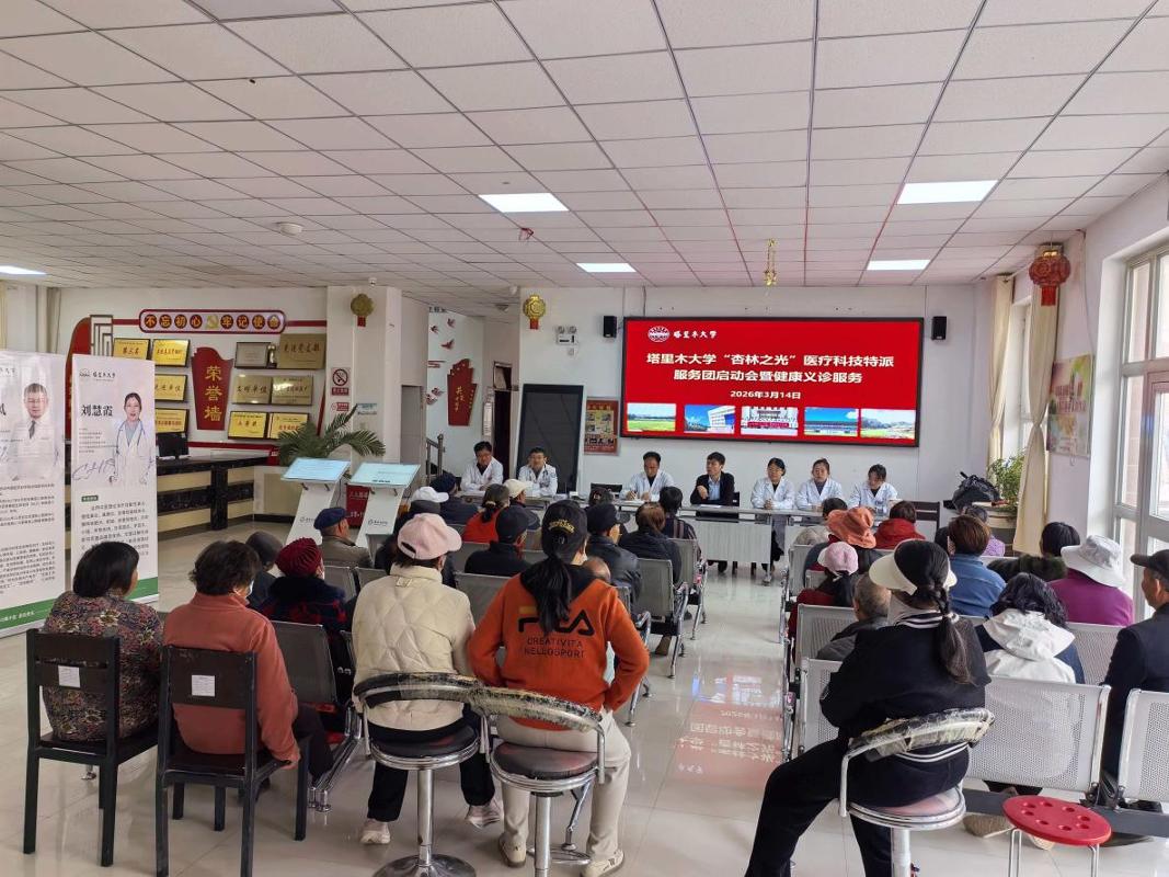 3月14日,yl7703永利集团官网“杏林之光”医疗科技特派员服务团启动会暨健康义诊活动在第一师六团金玉佳苑小区顺利举行。yl7703永利师生与兵团第一师医院专家参与。