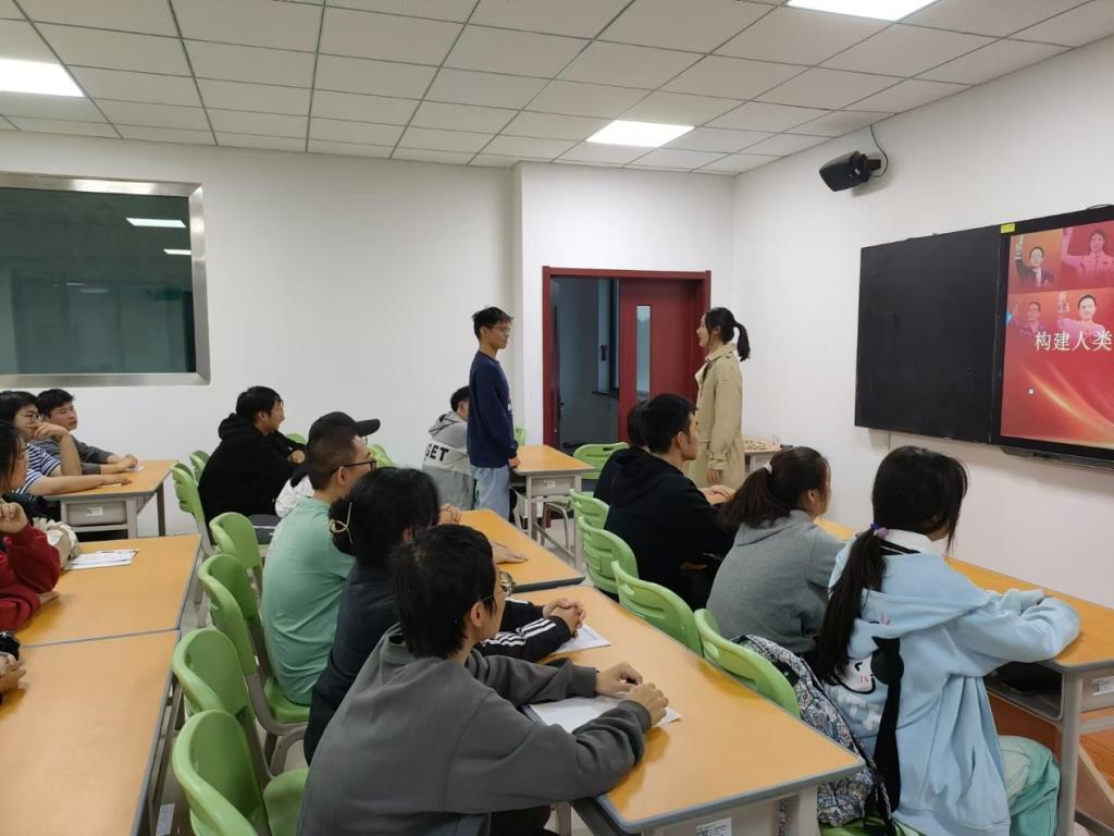 活动伊始,团支书安亚伟阐述了构建人类命运共同体的丰富内涵和重大意义,使同学们对这一概念有了更深入的理解。