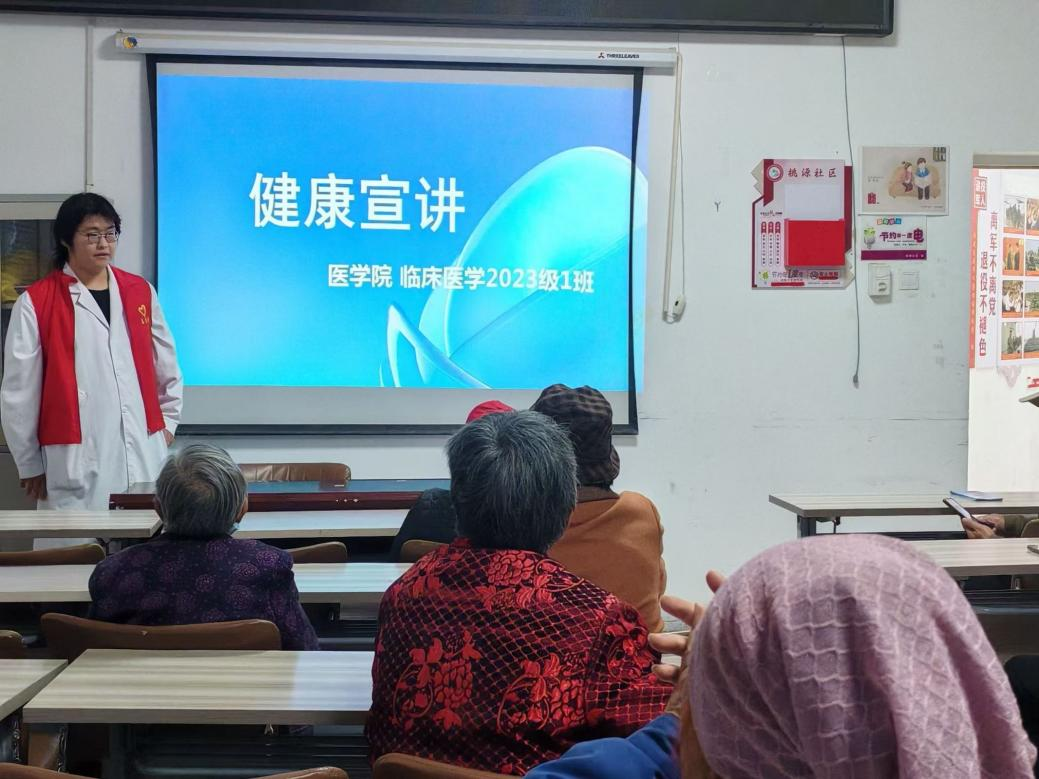 11月8日下午,yl7703永利临床医学2023级1班员工在桃源社区开展健康知识宣讲和义诊活动。