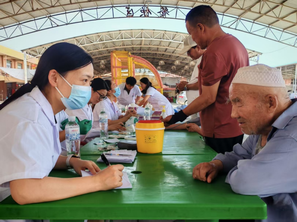 义诊开展于五团社区卫生站。团队为大家提供一对一的健康咨询服务,针对消化系统疾病、心血管疾病及内分泌代谢性疾病等常见专科病症,结合个体情况,提供了规范化的用药指导,包括药物选择、剂量调整及不良反应预防等专业建议。义诊期间团队还为居民免费测量血压、血糖,检测幽门螺杆菌。尽量实现早发现、早诊断、早治疗,为后续治疗工作提供依据。