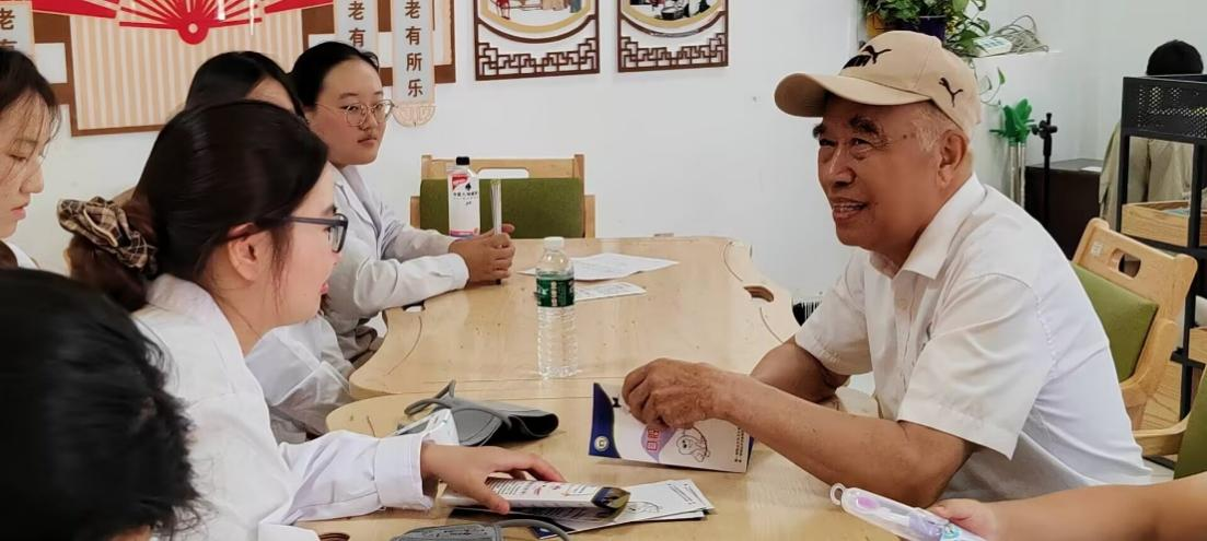 同时,服务队还为社区老年人测量血压、血糖,普及“低盐少油多蛋白”的健康饮食知识,邀请他们参与口腔健康倡议、协助完成相关调研。