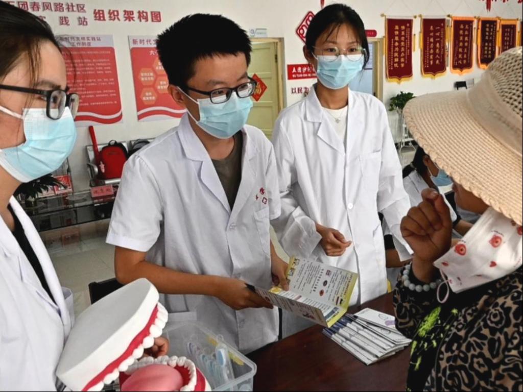 期间,队员们还邀请长辈们参与预防口腔问题的调查问卷,收集老年人群口腔健康常识、习惯、预防知识等实际情况,为下一步提供更精准的服务提供“一手”资料。服务队还为大家发放了牙膏、牙刷等护齿小礼品,传递对老年人口腔健康的关怀与温暖。