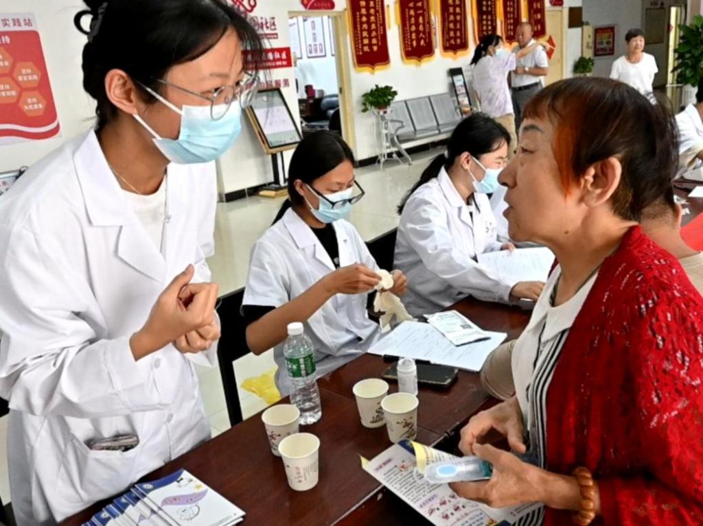 义诊现场,队员们以严谨专业的态度耐心为每一位老人检查口腔,针对老年人常见的牙齿松动、牙龈萎缩、牙周炎等问题,细致讲解病因,从科学角度提供解决方案。