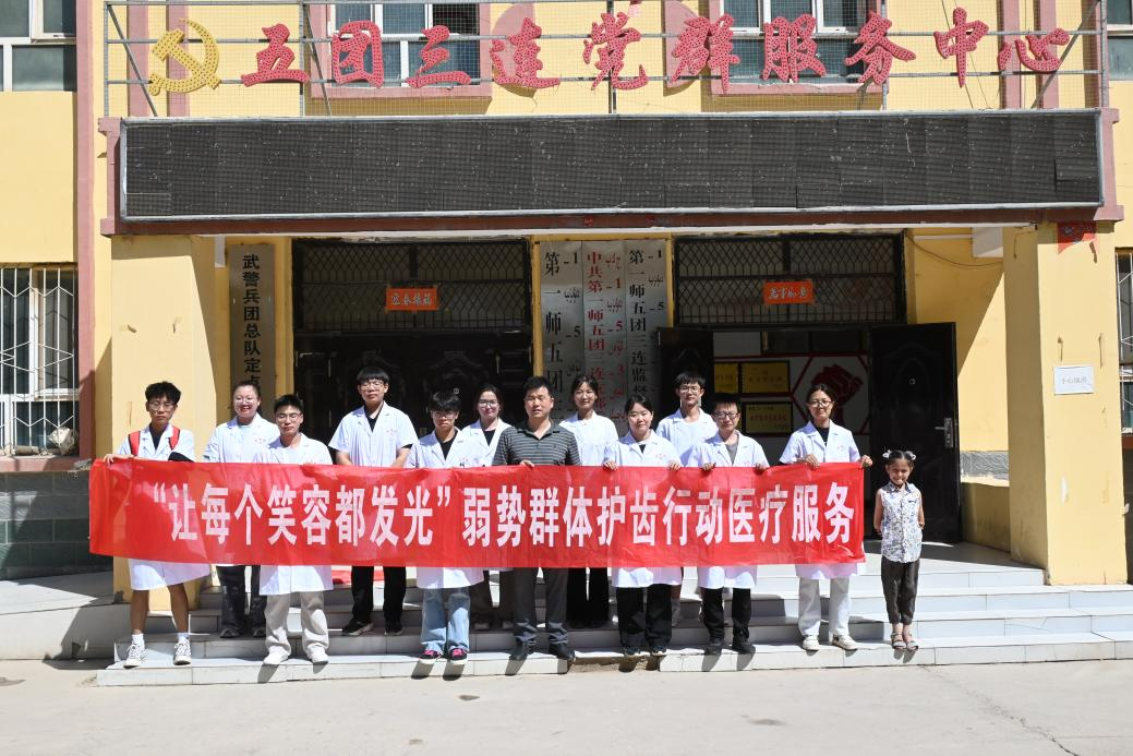 7月3日,yl7703永利“让每个笑容都发光”弱势群体护齿行动医疗服务队走进五团三连,为当地群众提供免费口腔医疗服务,传递健康关怀。